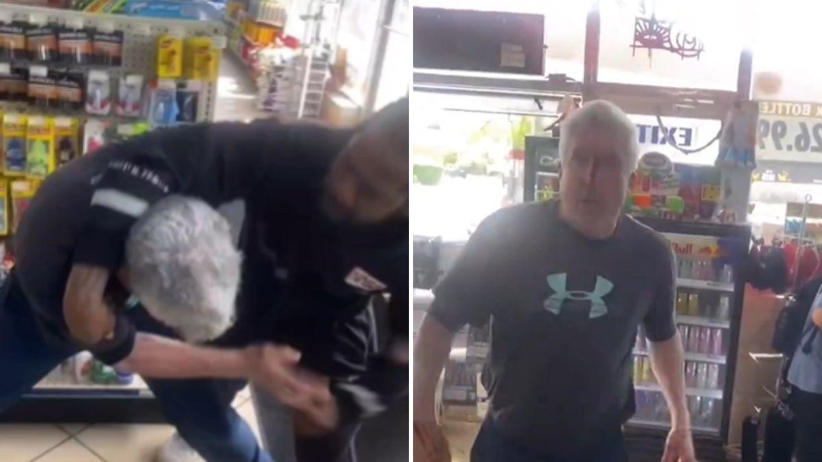 The altercation, which surfaced on April 24 on X, showed a white-haired man grabbing onto a candy counter inside a convenience store after being repeatedly struck.